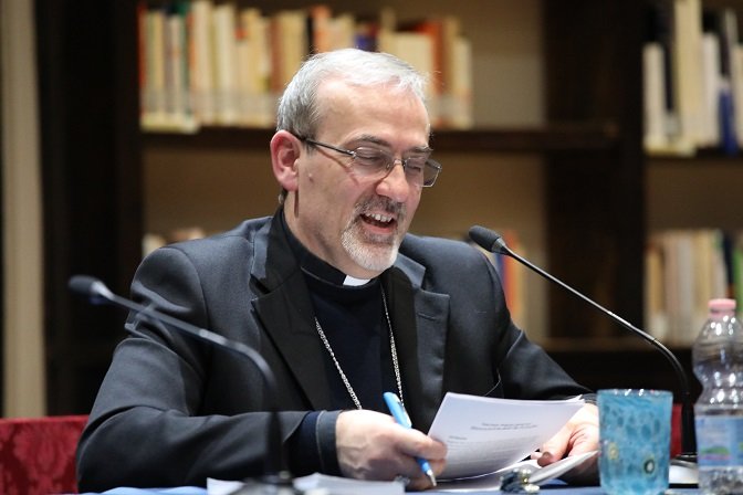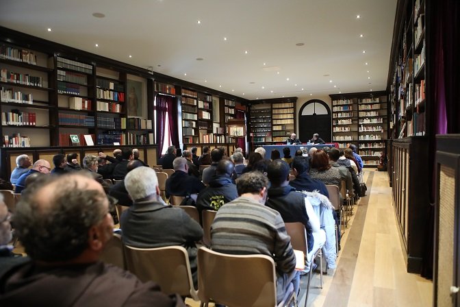 accompagnata, all’inizio e alla fine, dal violoncellista maestro Luca Fiorentini. Dopo i saluti e i ringraziamenti, il preside prof. fr. Stefano Cavalli ha illustrato le attività svolte dall’Istituto nell’anno appena trascorso, citando le licenze e i master conseguiti dagli studenti. La prolusione è stata tenuta da S.E. mons. Pierbattista Pizzaballa, amministratore apostolico del Patriarcato latino di Gerusalemme, che, alla presenza di un numeroso pubblico e grazie alla decennale esperienza in Terra Santa, ha parlato del «Dialogo francescano nella terra della Parola». In Medio Oriente, ha riportato l’arcivescovo, esiste una realtà specifica, plurireligiosa e pluriculturale, in cui l’identità comunitaria spesso coincide con l’identità religiosa e il dialogo interreligioso s’interseca con quello politico. In Terra Santa la situazione di conflitto penalizza ogni prospettiva di futuro, diventa criterio di lettura delle relazioni. A livello istituzionale non c’è alcuna forma di dialogo; c’è il timore di passare per collaborazionisti. Riandando all’esperienza di Francesco d’Assisi, al suo gesto allora non convenzionale di parlare con il sultano per ottenere il permesso di visitare i luoghi santi, mons. Pizzaballa ha posto l’accento su quest’aspetto tipico del dialogo francescano: avere fiducia nell’altro, riconoscerlo per quello che è, portare la propria testimonianza, svolgere attività assieme, perché il dialogo nasce dall’incontro, dalla conoscenza reciproca, dal perdono che per il cristiano è la più alta forma di giustizia.